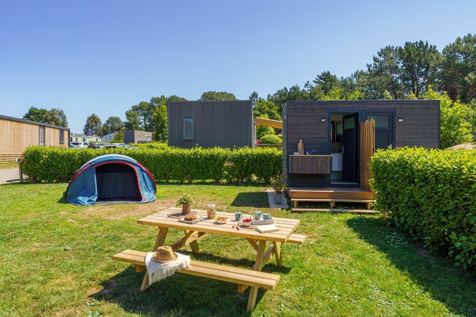 Op het zonneterras van de camping kunt u onder het genot van een drankje genieten van uw vakantie. In Bretagne eet u natuurlijk crêpes en drinkt u cider, en deze zijn volop te verkrijgen in het restaurant, dat in een oude Bretonse schuur te vinden is. Kinderen van jong tot oud vervelen zich hier zeker niet, want voor elke leeftijdscategorie is er een club die activiteiten voor ze organiseert. Wat dacht u van duiken, keien beschilderen, schatgraven en strandvissen? Speeltuinen, springkussens en sportterreinen maken het geheel compleet. En 's avonds is er minidisco en shows voor het hele gezin.