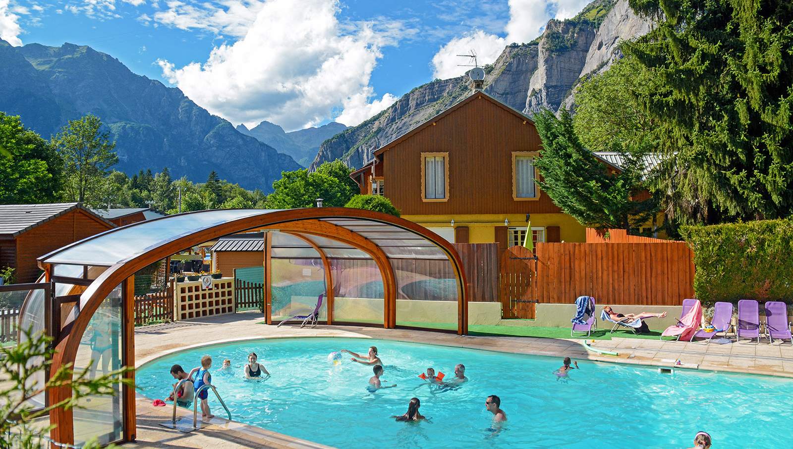 Op deze camping, die zeer geschikt is voor fietsliefhebbers, iseen fijn zwembad aanwezig. Vanuit uw stacaravan bent u een paar meters verwijderd van het overdekte en verwarmde zwembad, waar u een heerlijke duik kunt nemen na een inspannende beklimming van een van de vele cols in de omgeving. Vanuit het zwembad heeft u zicht op de prachtige Alpen. Rondom het zwembad is een terras met ligbedden, waar u heerlijk van de pure Alpenlucht kunt genieten.
