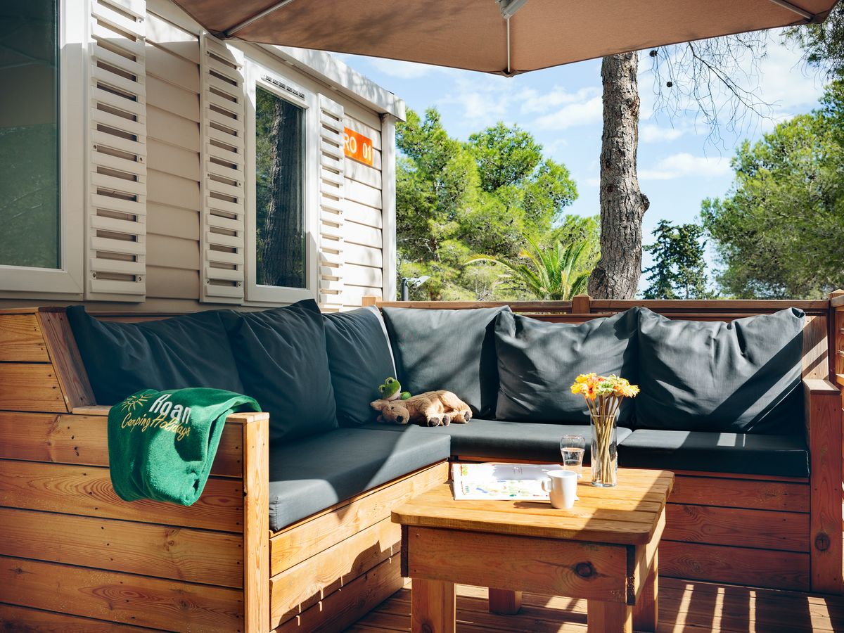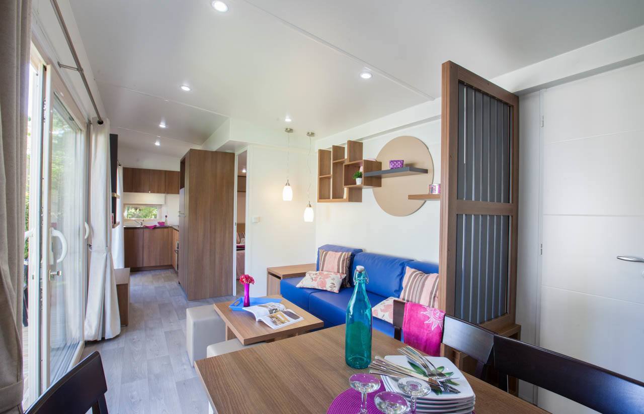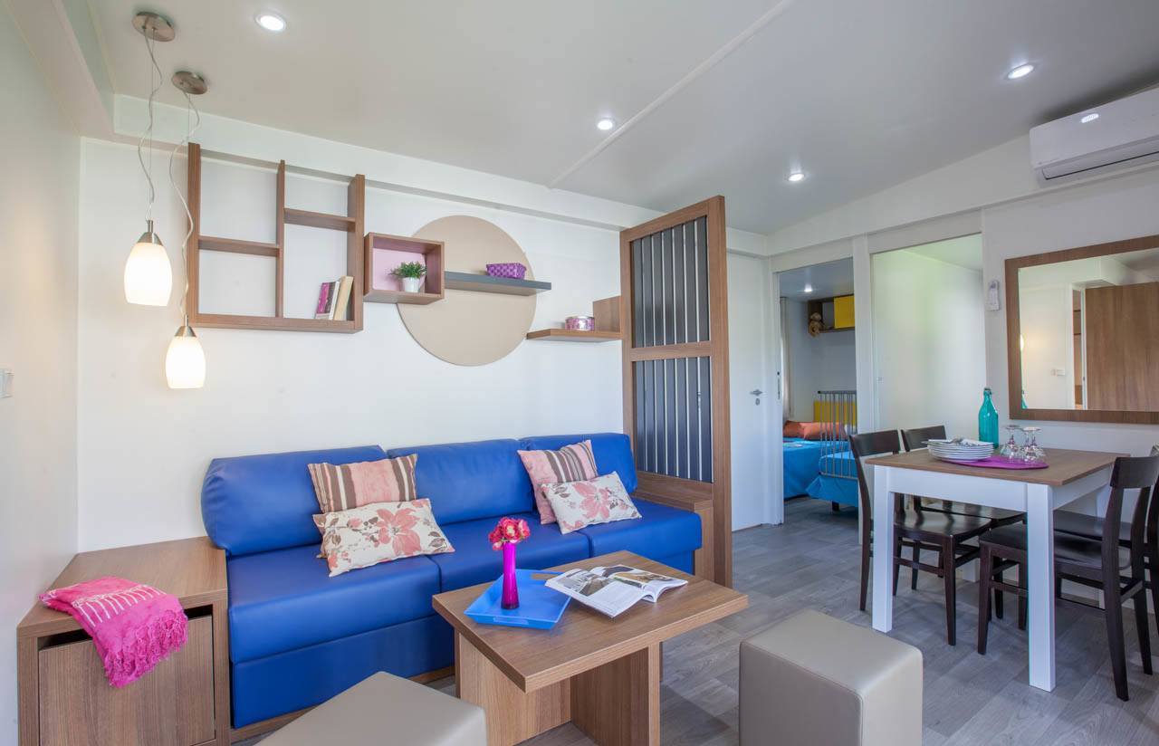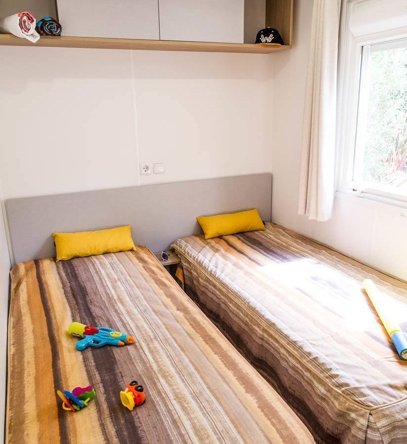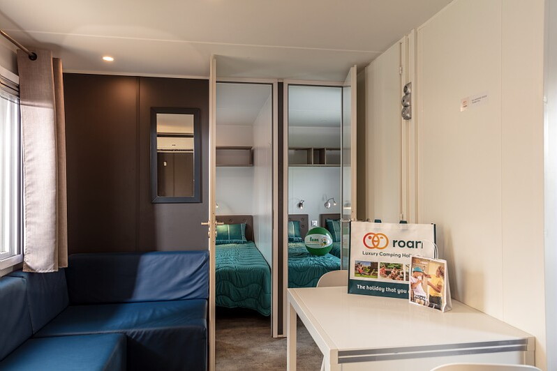 Het speels gevormde zwembad met glijbanen en jacuzzi's heeft een tropische sfeer door de rotsen en sierpalmen; een waar paradijs voor de kinderen. Voor de allerkleinsten is er een peuterbad, waar ze heerlijk kunnen spelen. In het geweldige aquapark vindt u veel lange glijbanen en speeltoestellen in een verwarmd en overdekt bad voor de kids. Ouders kunnen lekker relaxen in het gedeelte met bubbelbaden! Het strand is te vinden op ca. 2 km van de camping. U kunt hier natuurlijk naartoe lopen of de auto nemen, maar er gaat ook een shuttlebus (niet gratis).