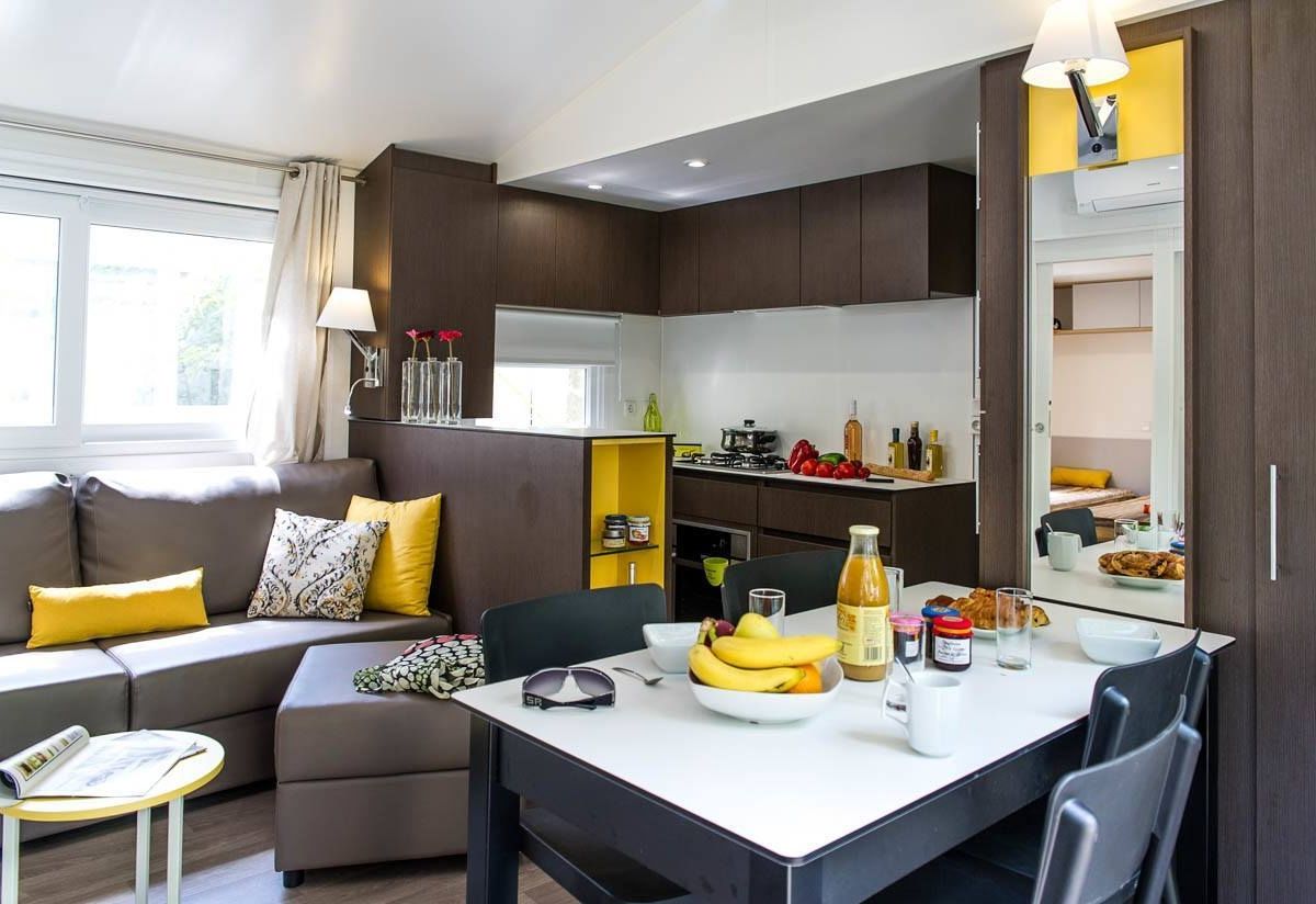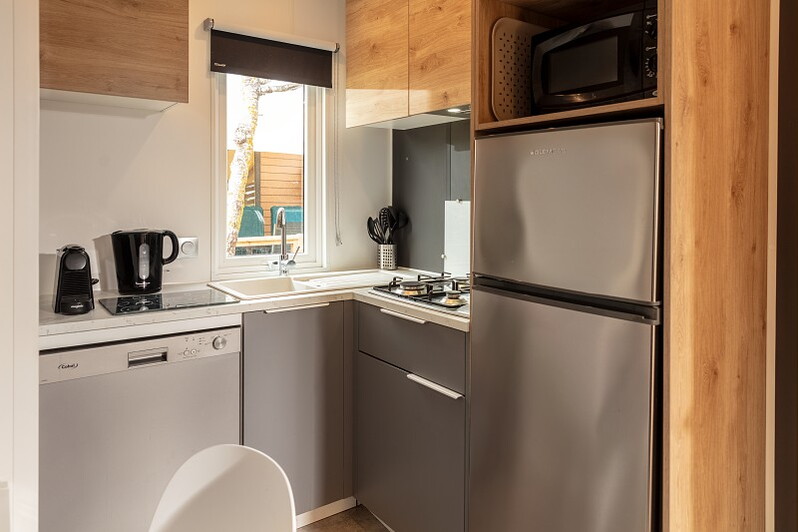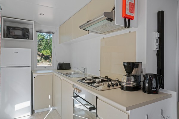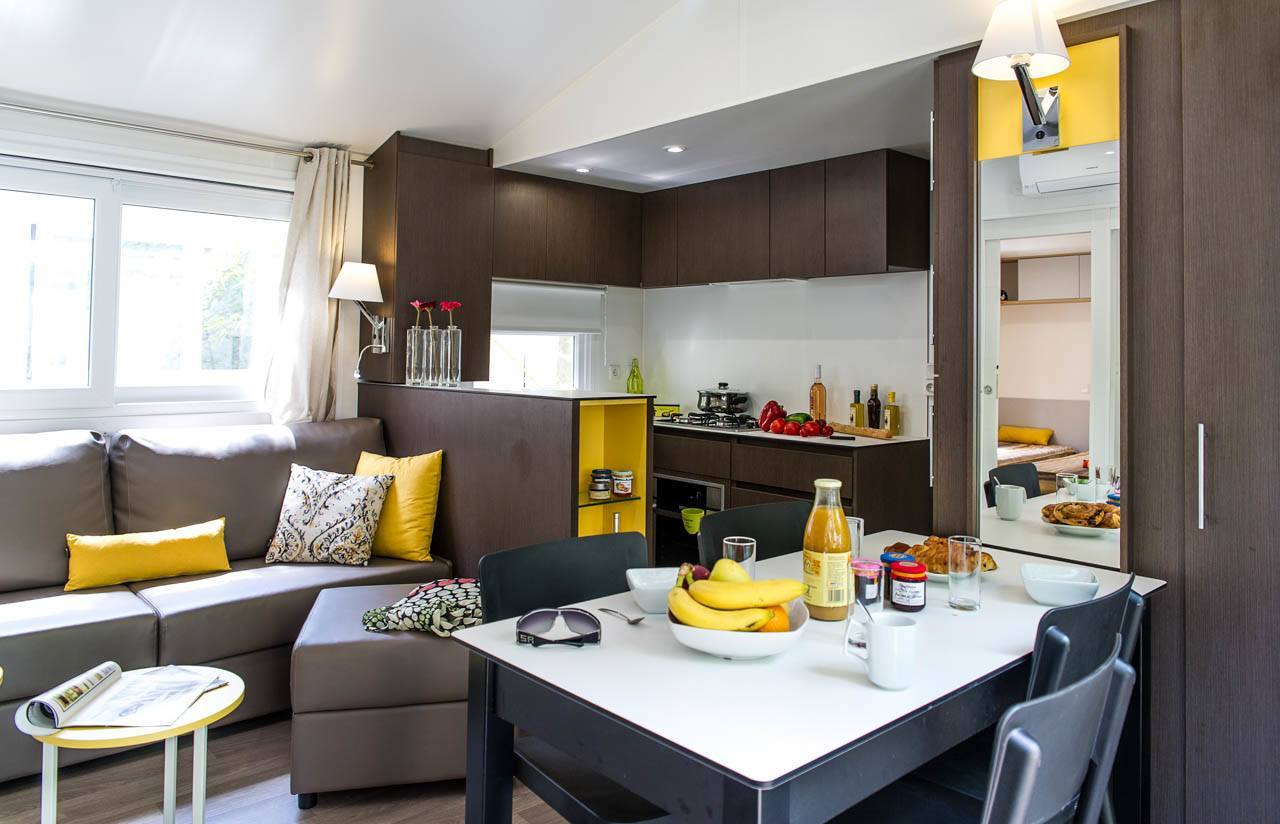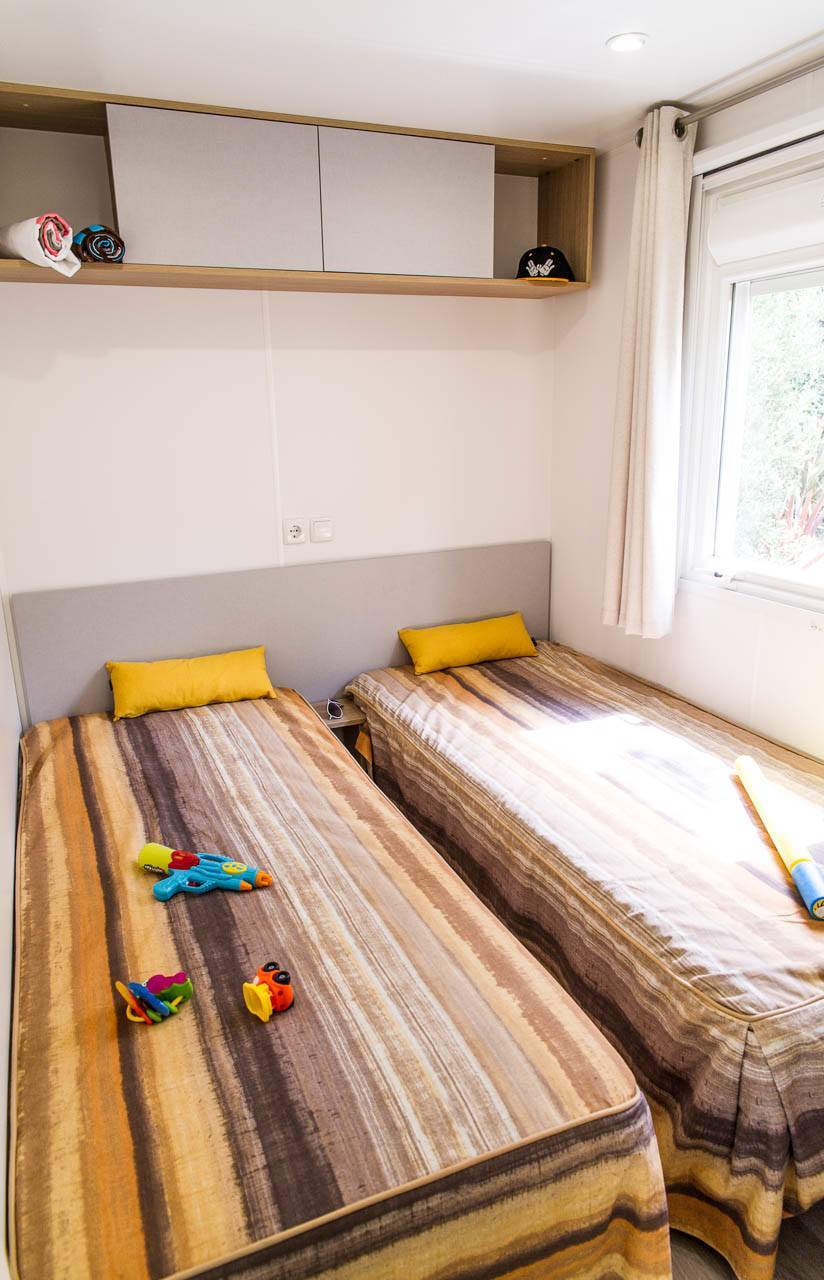 Het speels gevormde zwembad met glijbanen en jacuzzi's heeft een tropische sfeer door de rotsen en sierpalmen; een waar paradijs voor de kinderen. Voor de allerkleinsten is er een peuterbad, waar ze heerlijk kunnen spelen. In het geweldige aquapark vindt u veel lange glijbanen en speeltoestellen in een verwarmd en overdekt bad voor de kids. Ouders kunnen lekker relaxen in het gedeelte met bubbelbaden! Het strand is te vinden op ca. 2 km van de camping. U kunt hier natuurlijk naartoe lopen of de auto nemen, maar er gaat ook een shuttlebus (niet gratis).