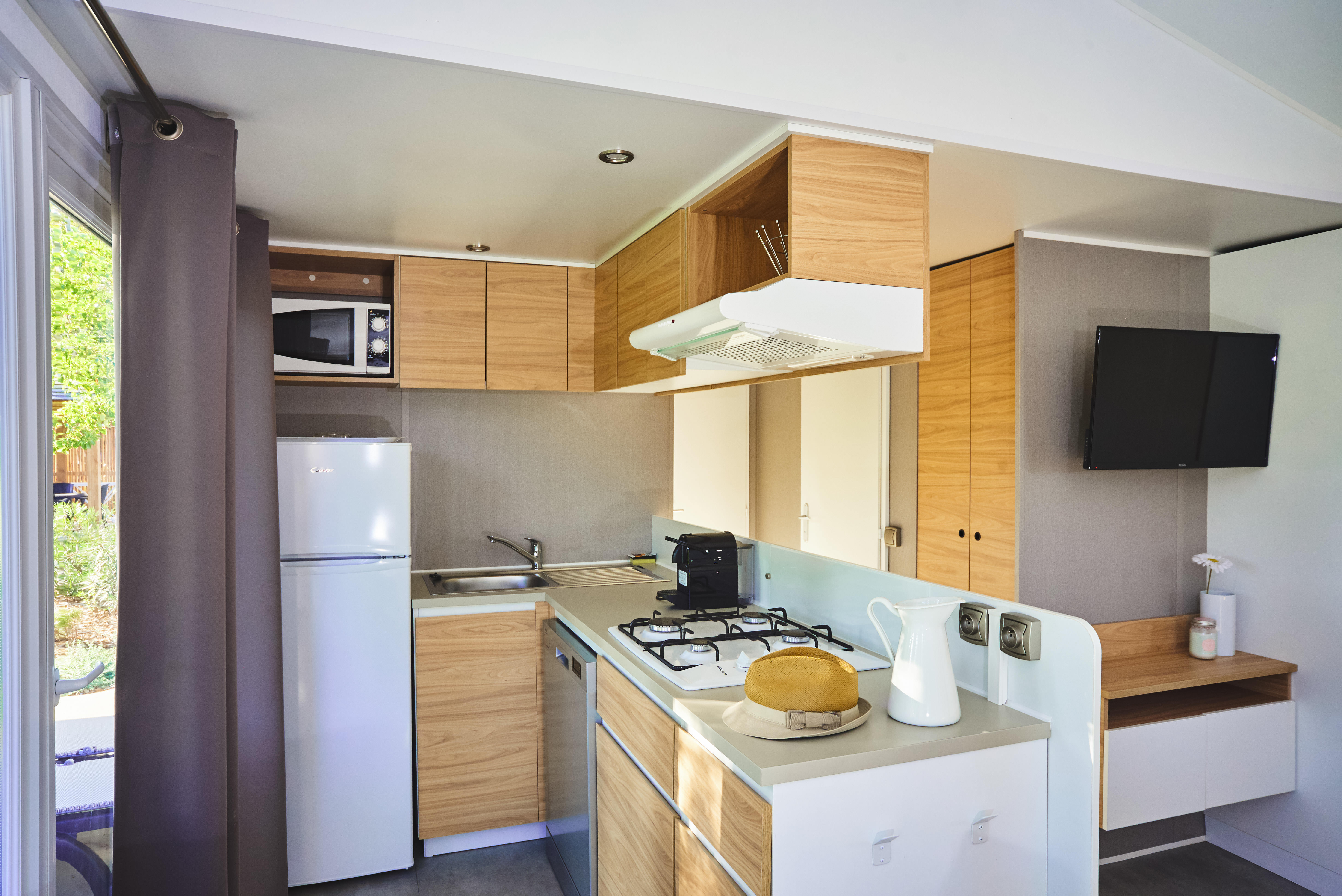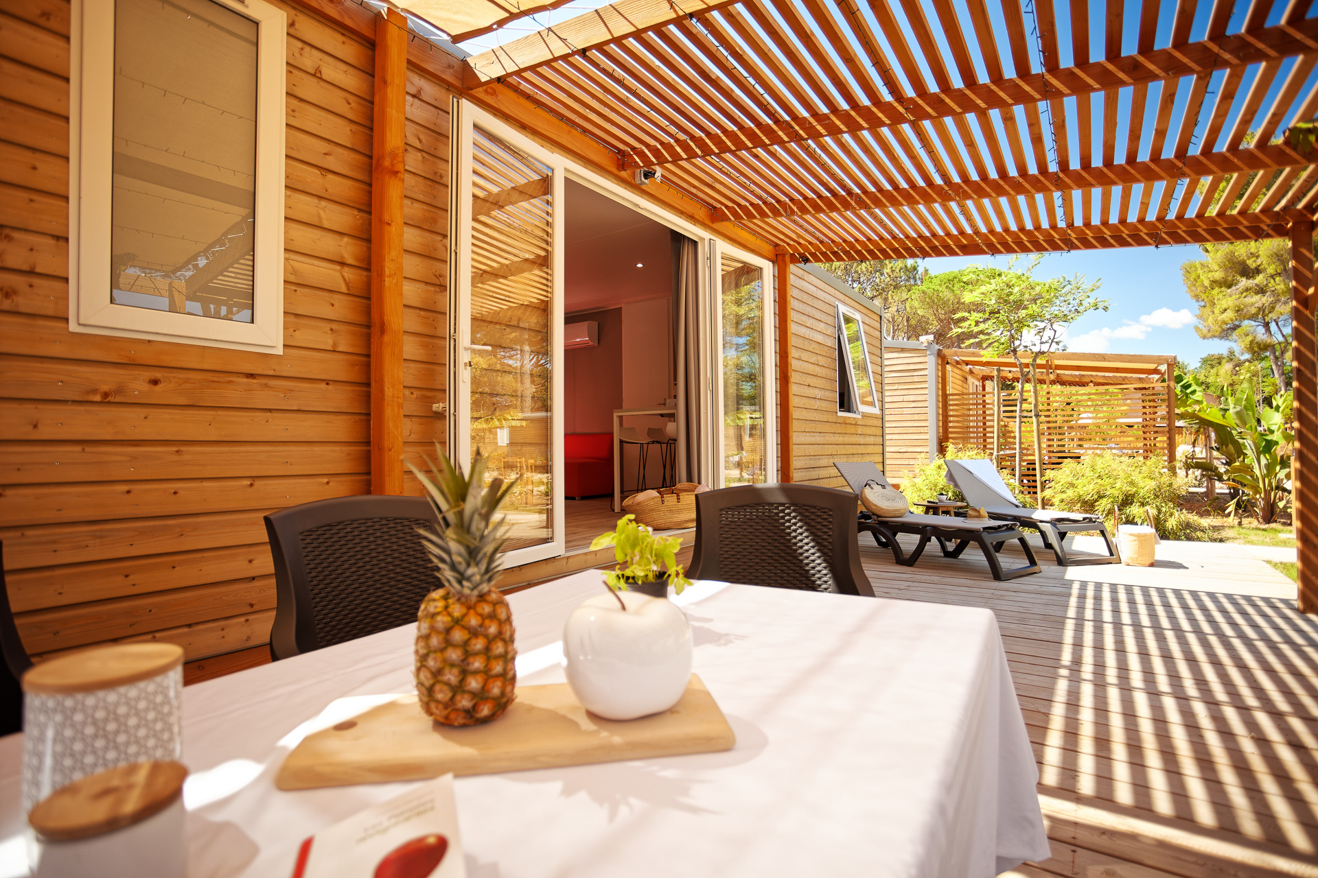 Voor een hapje en drankje kunt u kiezen uit het restaurant aan het zwembad, het romantische restaurant onder een enorme boom en de gezellige tapasbar. Verfrissingen zijn verkrijgbaar bij de zwembadbar en de foodtruck stilt uw trek tussendoor met lekkere meeneemsnacks. De eigen supermarkt van de camping biedt elke dag verse bakkerijproducten, kruidenierswaren, regionaal fruit, groenten en wijnen.