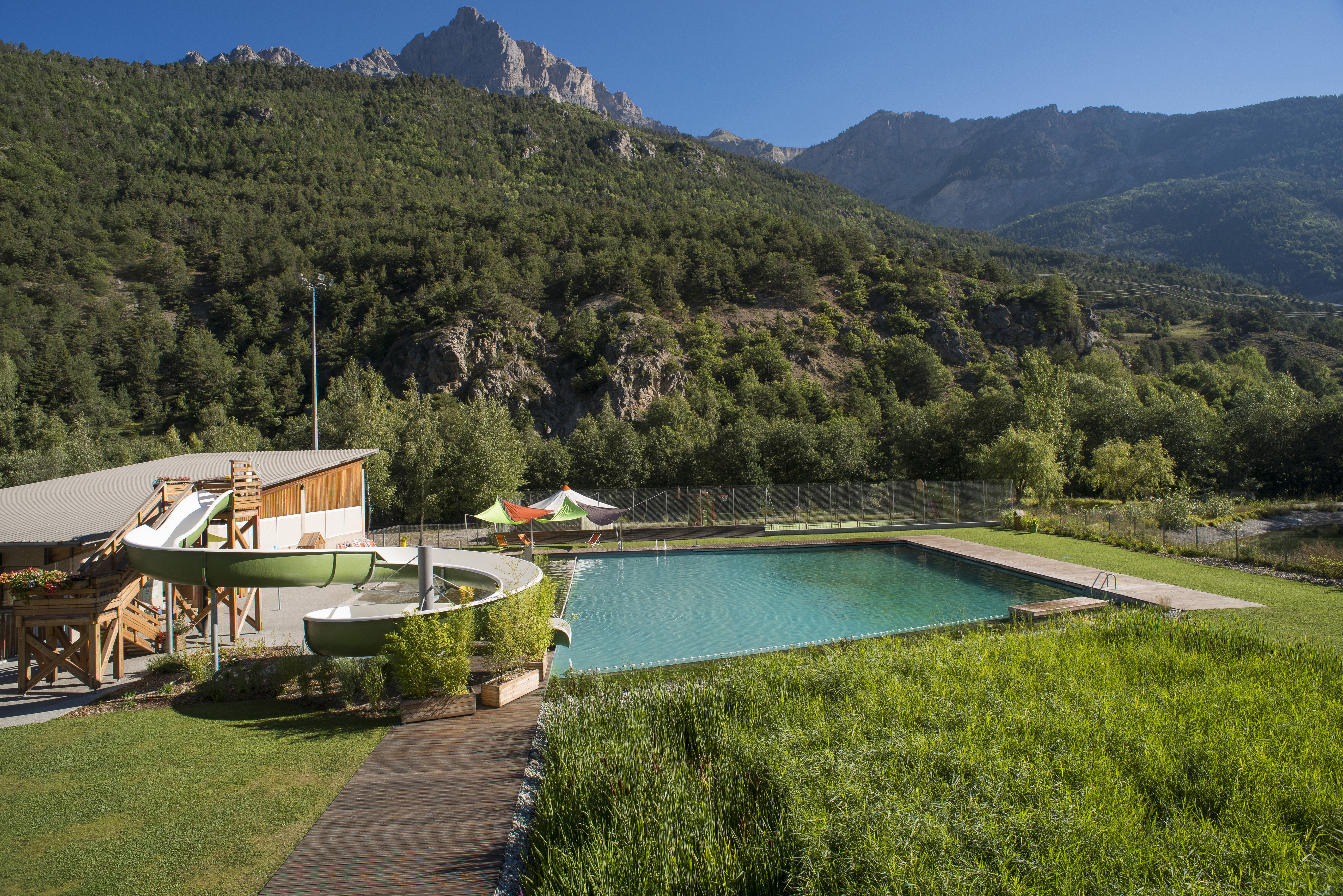 - Zwembad met apart kinderbad en grote glijbanen