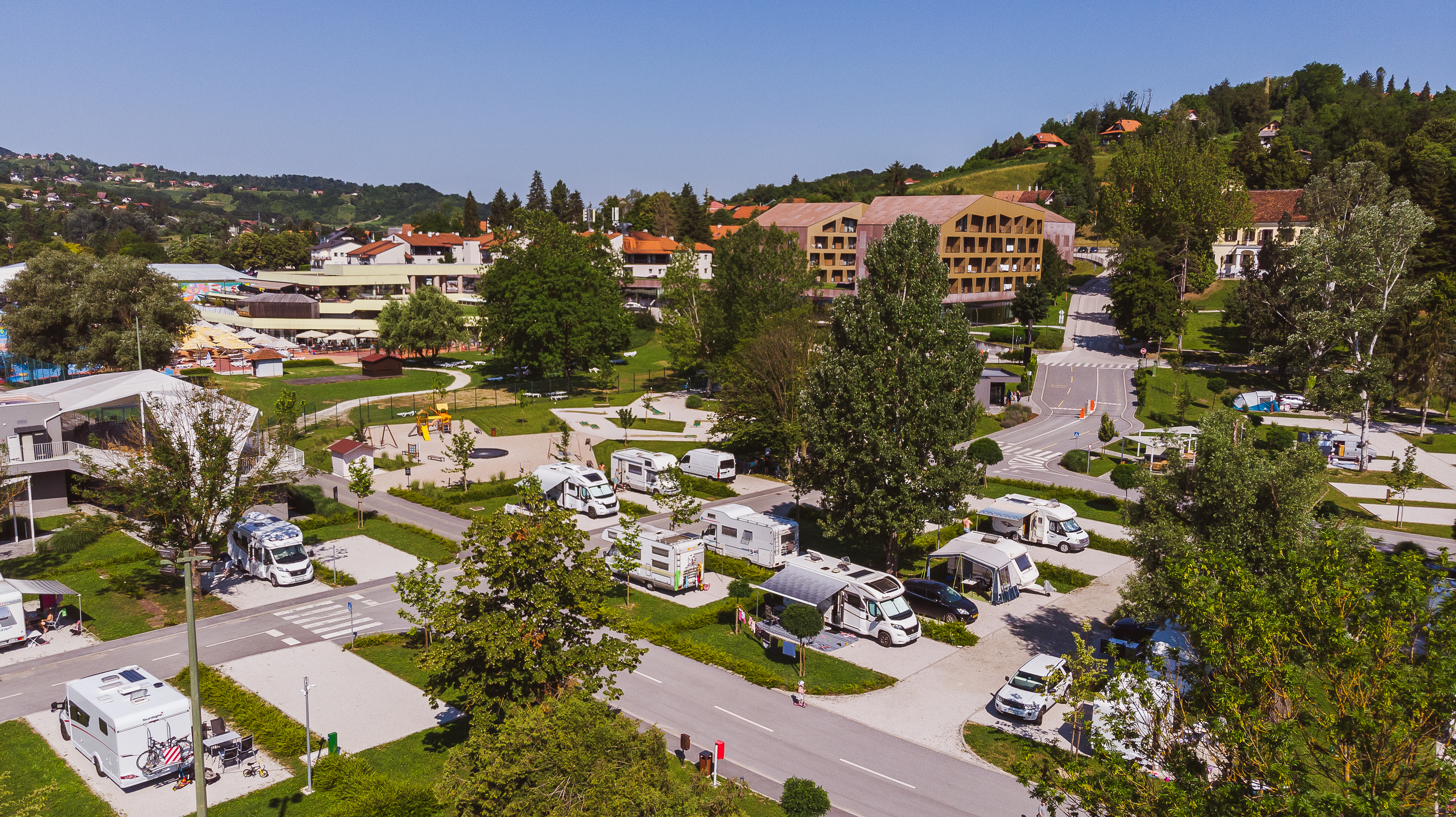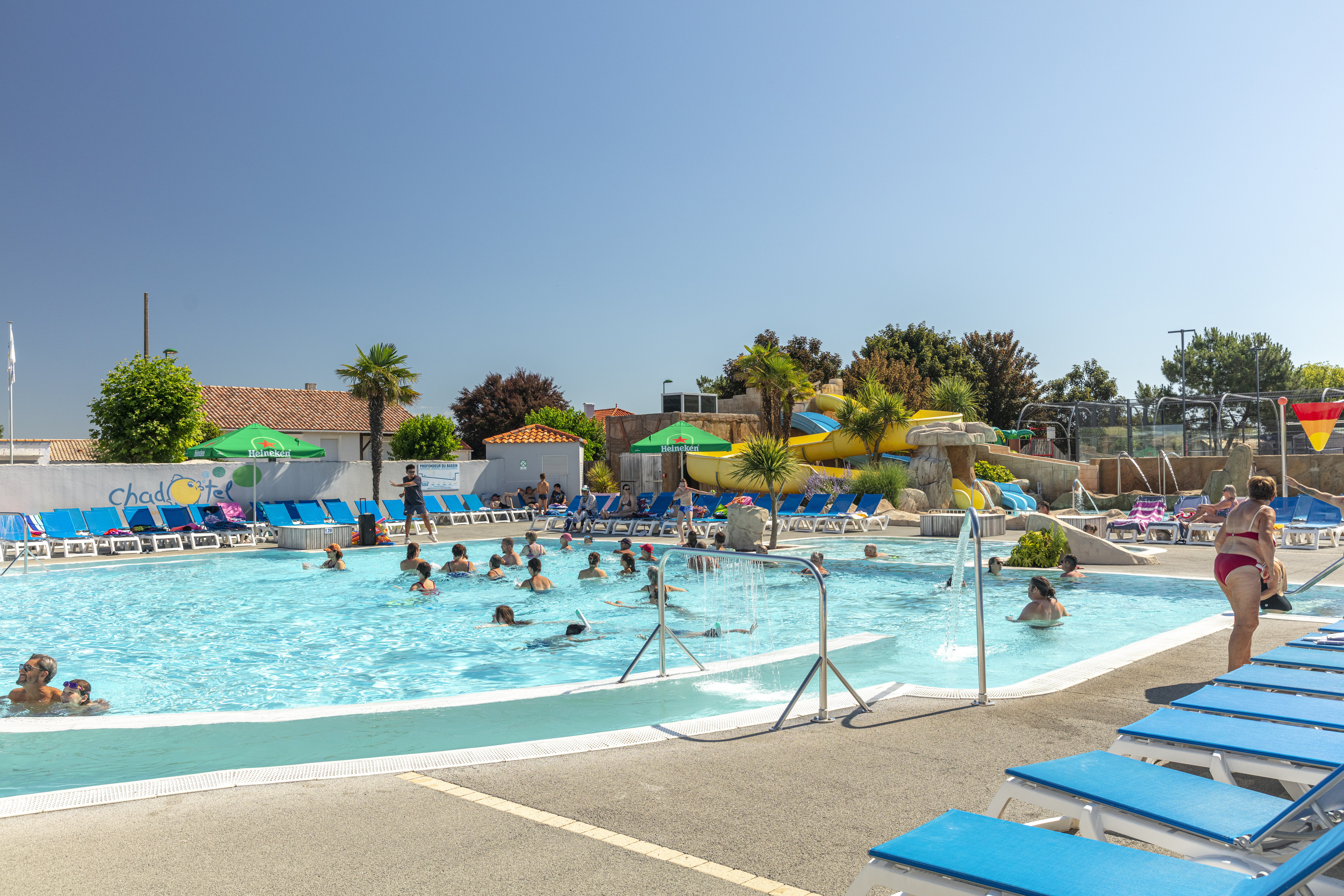 - Groot zwembadcomplex met glijbanen en zonneterras