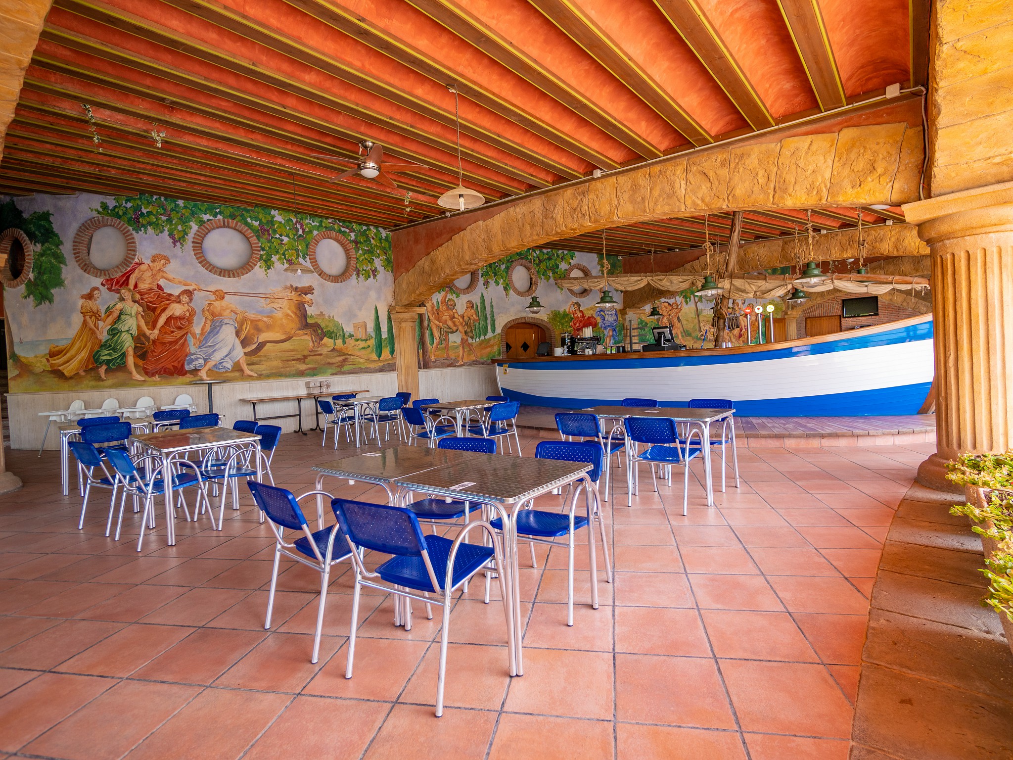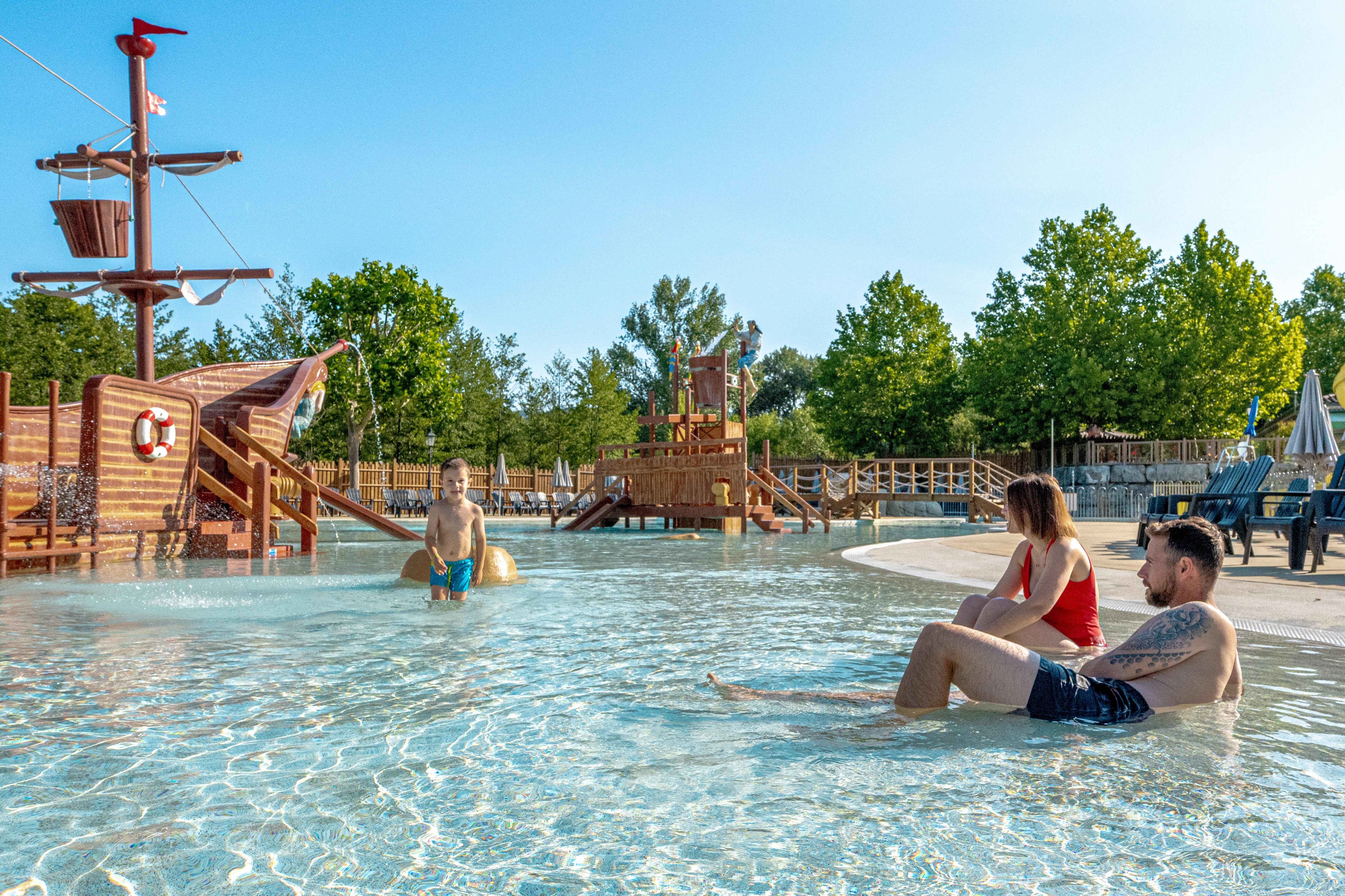 - Zwembad met piratenschip en glijbanen