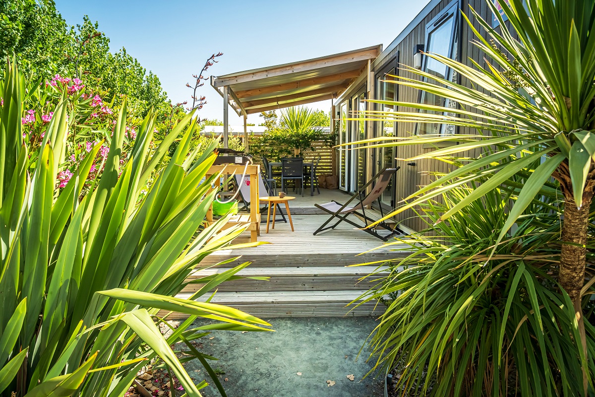- Kleurrijke camping door vele bloemen en bomen