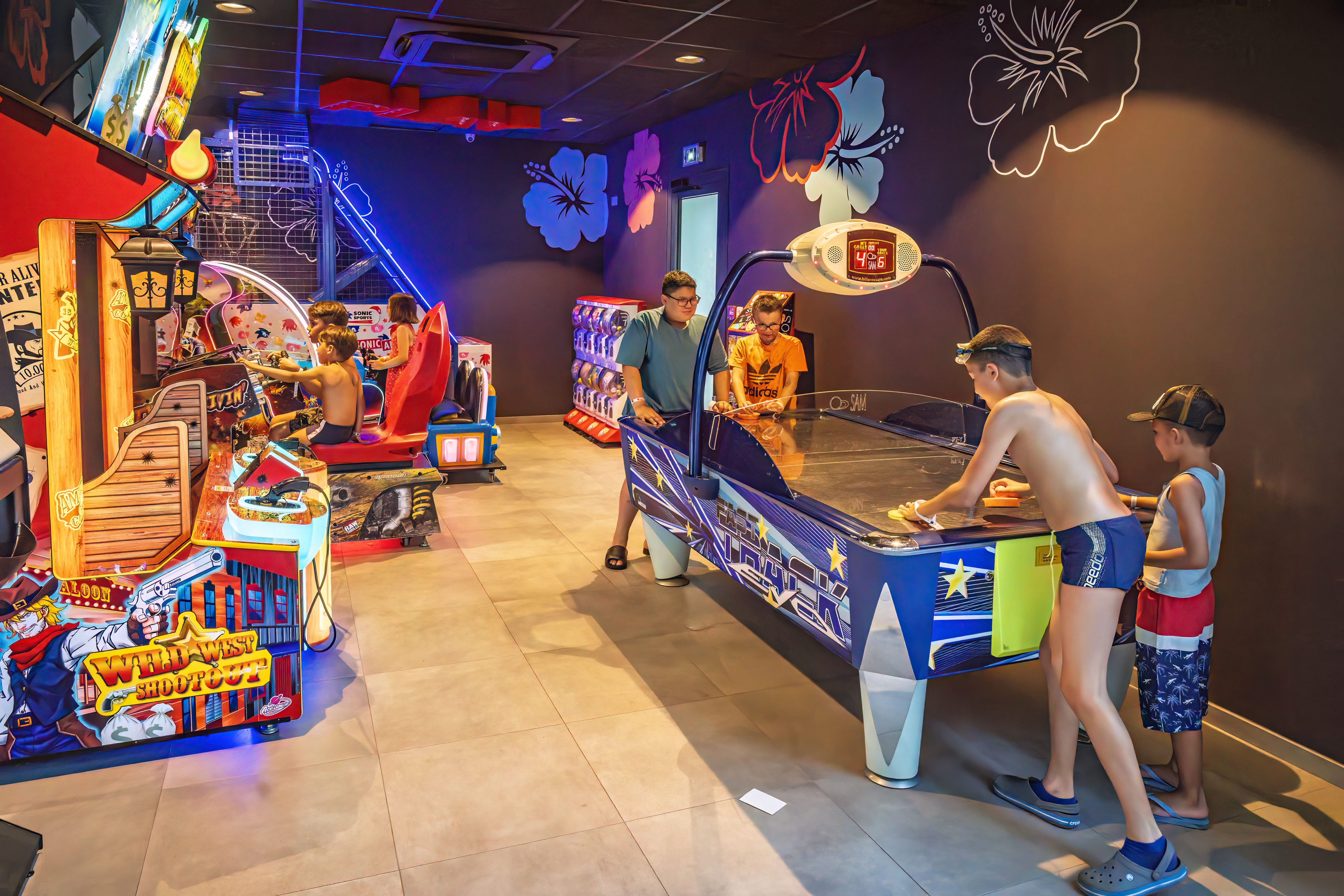 - Meerdere zwembaden met glijbanen en speelbad