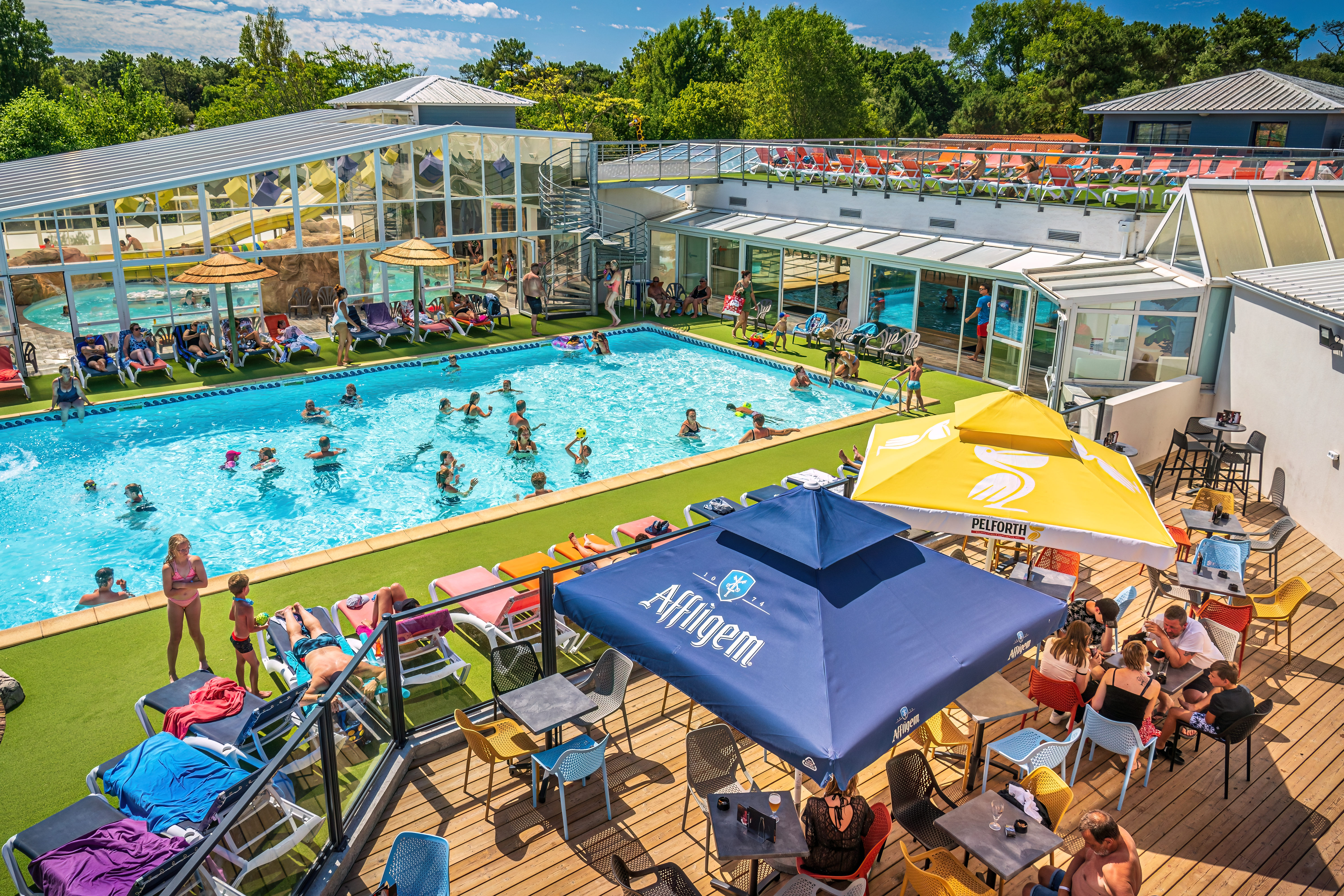 - Groot aquapark met speeltoestellen, binnenbad en glijbanen